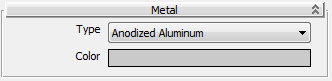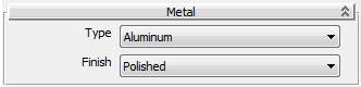 Lets you set a surface finish for Aluminum, Chrome, Copper, Brass, Bronze, or Stainless Steel.