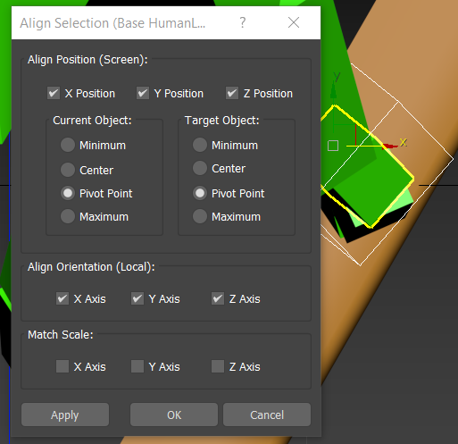 - Align Orientation (Local): X Axis, Y Axis, Z Axis