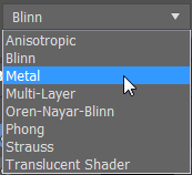 - On the Shader Basic Parameters rollout, click the drop-down arrow next to Blinn and choose Metal.