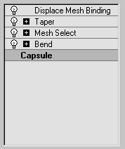 - At the bottom of the stack, the first entry always lists the object type (in this case, Capsule). You click this entry to display the original object creation parameters so you can adjust them. If you haven’t applied any modifiers yet, this is the only entry in the stack.