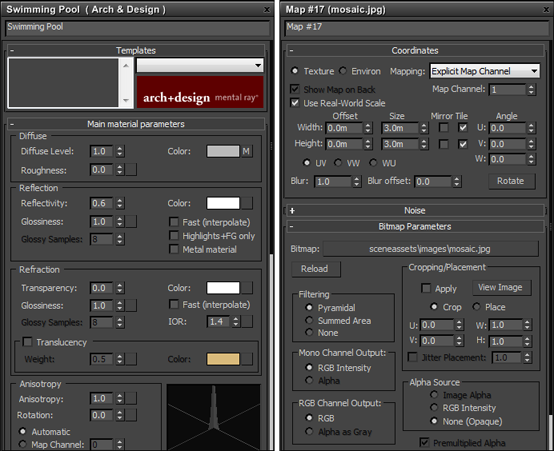 Materials and maps have various parameters you can adjust. To see the parameters for a material or a map, double-click the node. The parameters appear in the Parameter Editor.