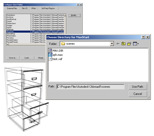 The File I/O panel contains paths for most of the standard support files. You can specify one path for each of file types 3ds Max uses.