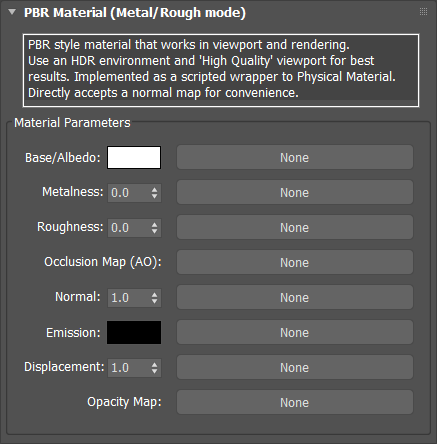 The PBR (metal/rough) material is a physically based rendering material provides an accurate representation of how light interacts with surfaces.