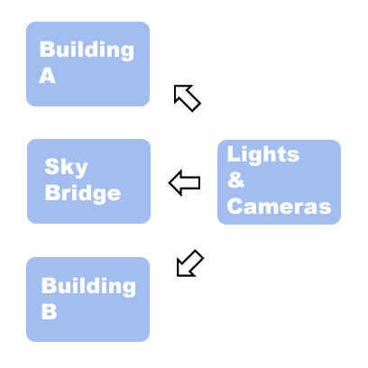 But the artists working on Building A and the artist working on the sky bridge need to see each other’s work to make sure everything lines up. The obvious solution would be to externally reference each other’s scene file: