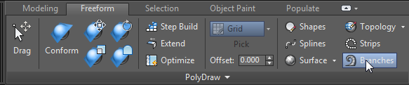 - On the ribbon, click the Freeform tab, and on the PolyDraw panel, click