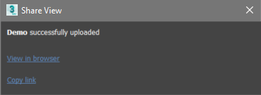 A pop-up window provides the link to the shared view in Autodesk Viewer. This makes it easy for you to send the link to your collaborators .