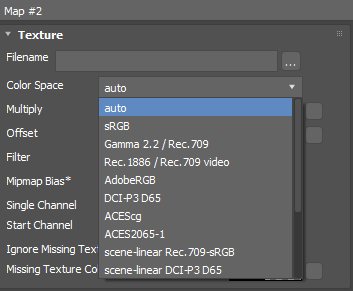 Arnold Image Node supports more color spaces: In earlier versions the Image node was limited to "auto", "linear", "sRGB" and "ACESCg" color spaces, and it was stored as an integer parameter with values from 0 to 3. This is now changed to a string parameter, and the provided choices are the color spaces defined in the OCIO configuration. When loading old files, the old integer value is automatically upgraded to its matching string value. (MAXTOA-1519)