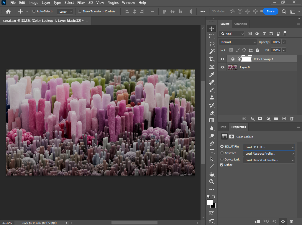 - Layer -> New Adjustment Layer -> Color Lookup -> Load 3D LUT