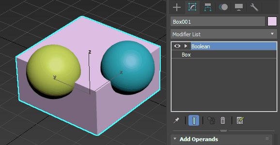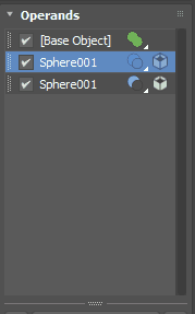 You can use the Operands rollout to edit your operands at any time, previewing changes in your scene in real time. Turn on Manipulate Operands to quickly select operands directly in the viewport instead of using the rollout.