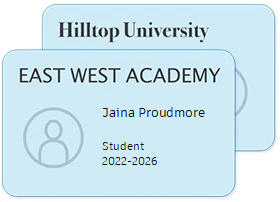 ID badge with full name of student, school name, and date. Photo not required