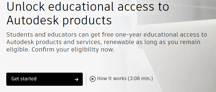 - Visit https://www.autodesk.com/education/edu-software and click Get Started.