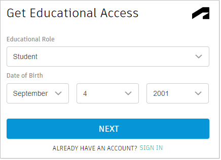 - Under educational role, select Student and enter your date of birth.