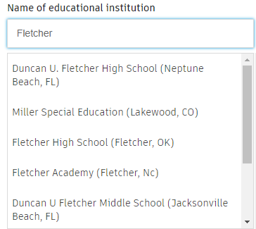 Type in more detail and click your school’s name when it displays in the list.