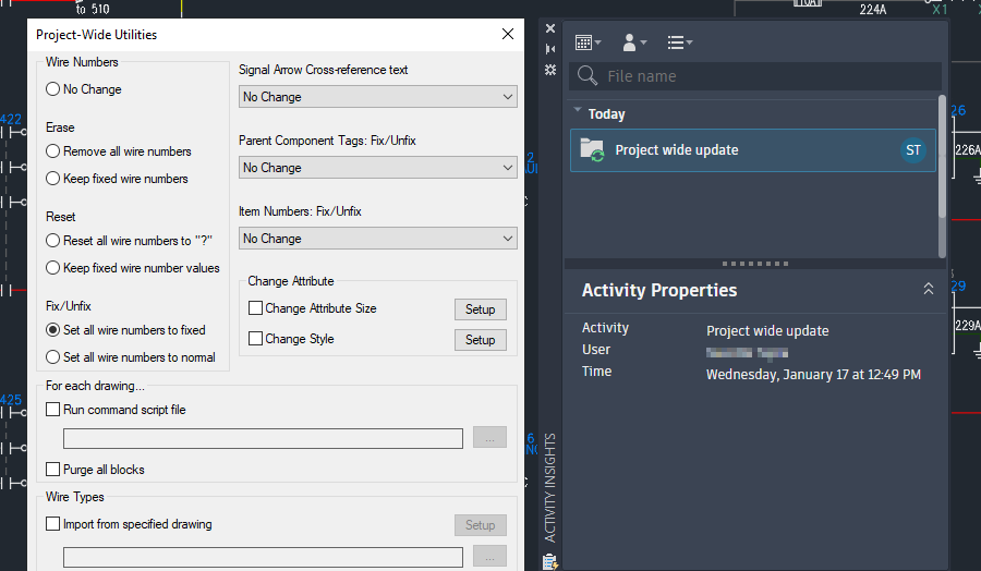 In AutoCAD Electrical 2025, the Activity Insights feature has been enhanced to provide more detailed information about events related to project-wide updates.