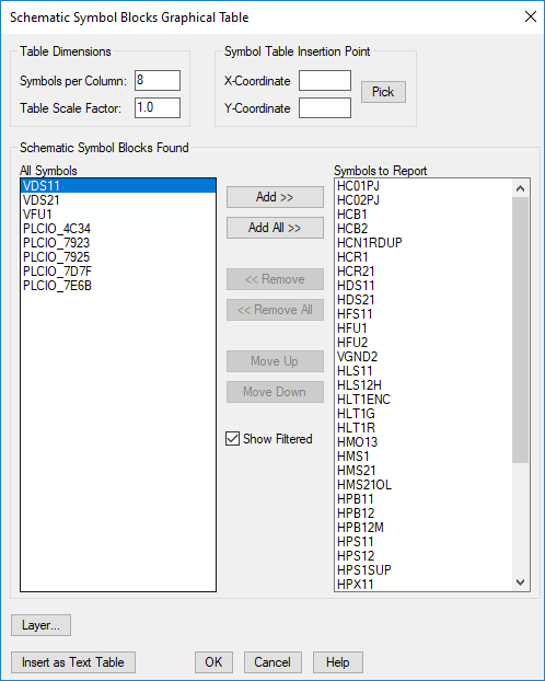 Select Symbol List from the report list. Run the report and click Put on Drawing on the Report Generator dialog box.