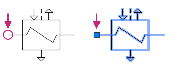 The base point is circled on the block below. Later, if you select a, block that's already been inserted, it displays a grip at the base point. You can easily move and rotate this block using this grip.
