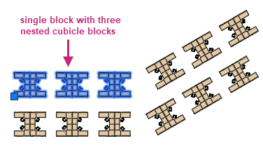 One or more block definitions created in your current drawing. For example, you might want to create a block from a set of objects that appear repeatedly in that drawing, such as the following cubicle arrangement that contains multiple nested blocks. All the blocks used in the cubicle arrangement can be combined into a single block for multiple insertions.