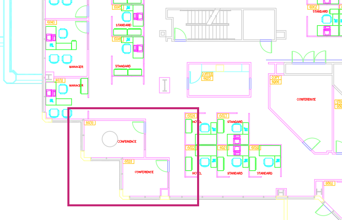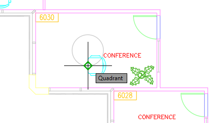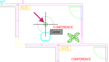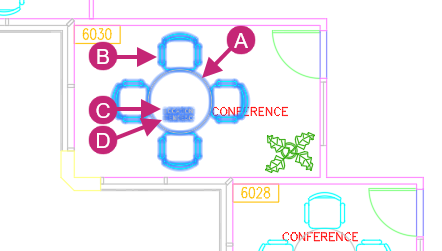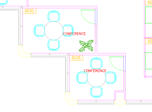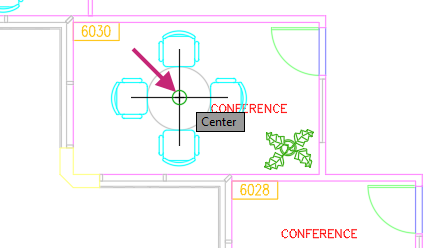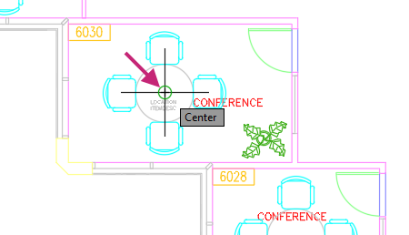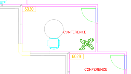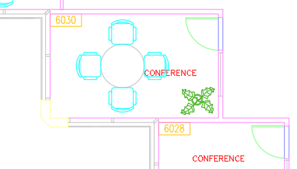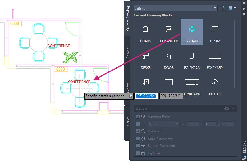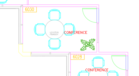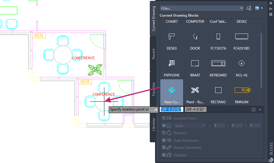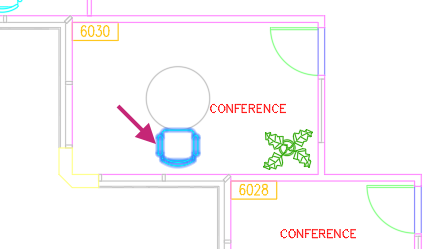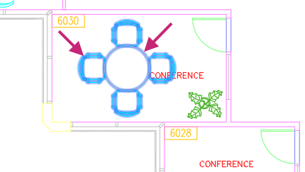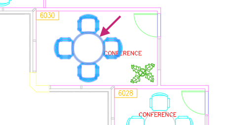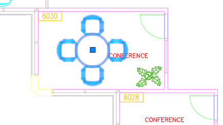 On the Blocks palette, Current Drawing tab, click New Conf Table with Chairs and specify a point in the Conference Room 6028.