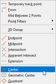 - At the Specify insertion base point: prompt, hold down the Shift key and right-click. From the context menu, choose Center.