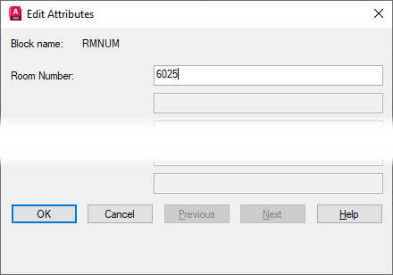 In the Edit Attribute dialog box, Room Number: text box, replace the default text 0000 with 6028. Click OK.