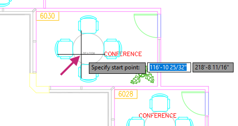 At the Specify start point: prompt, specify a point near the center of the circle (table); exact placement isn't important.