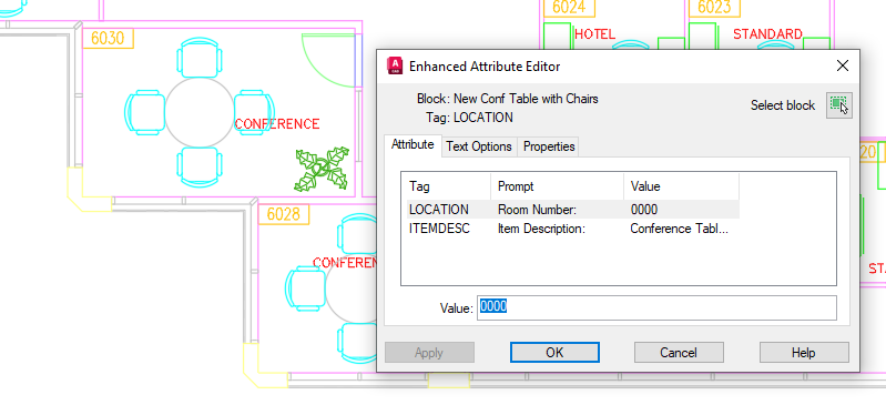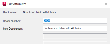 Now let's replace the other block with conference table and four chairs that doesn't have attributes with the new block.