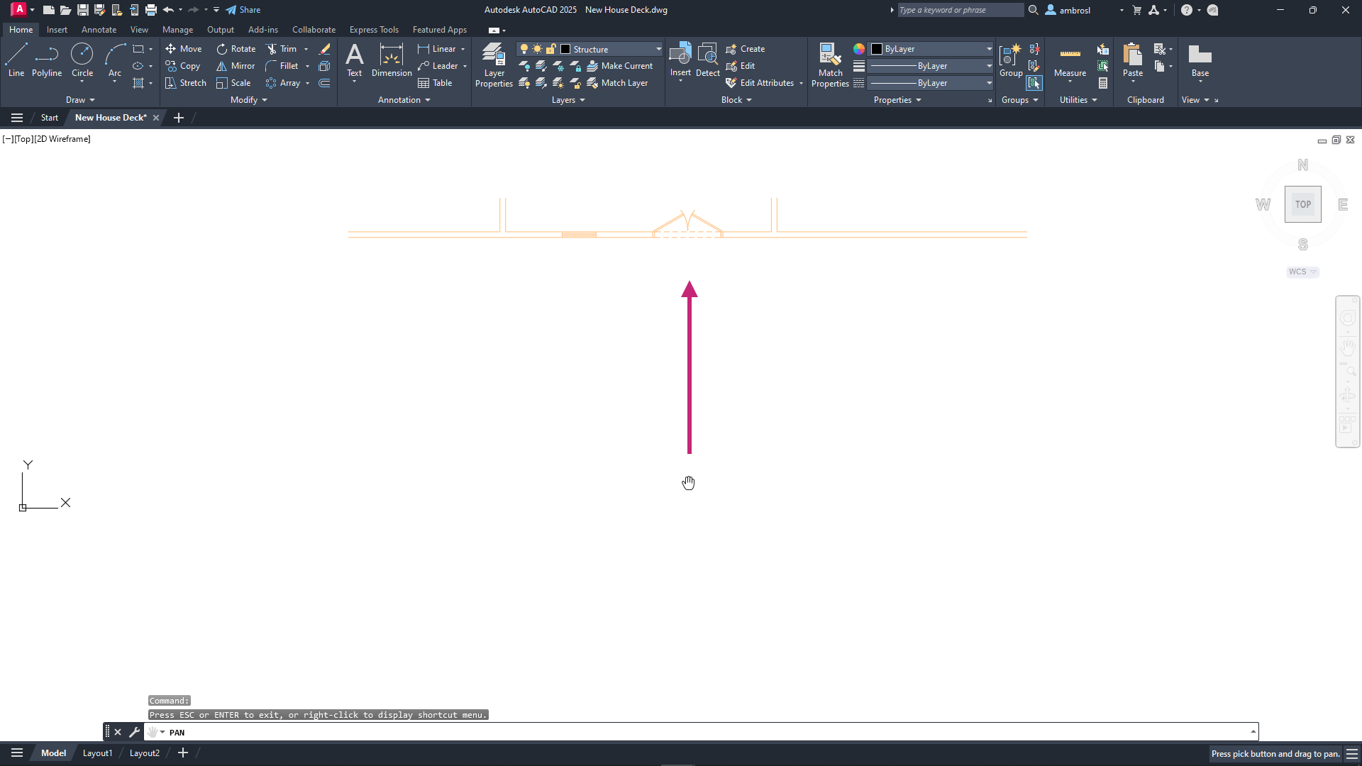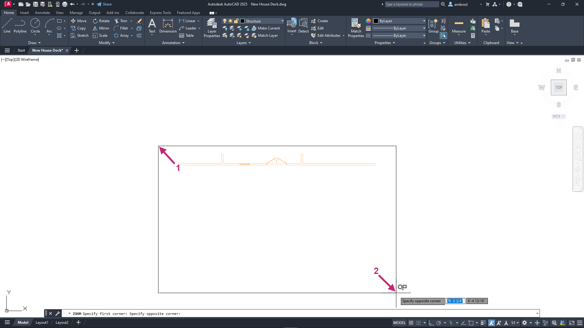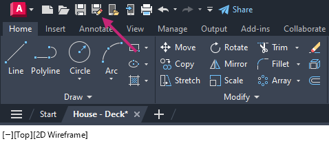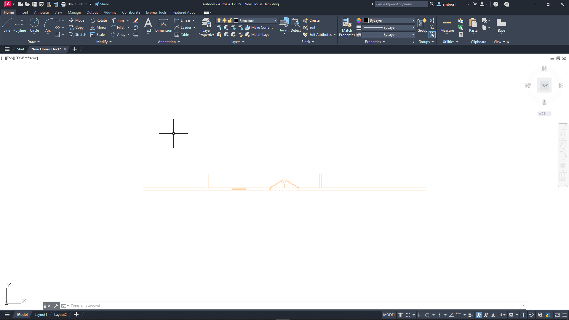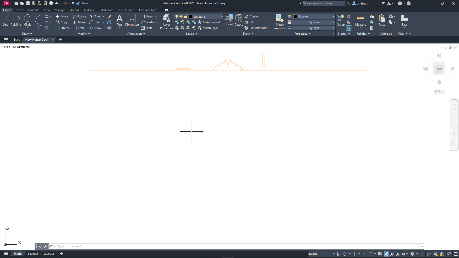 A new drawing file is created and named New House Deck in the Documents folder. Make sure you continue with this file for the remainder of the exercises.