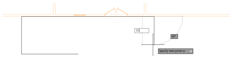 At the Specify next point or [Undo]: prompt, drag the cursor to the left and enter 15'.