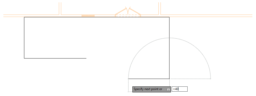 At the Specify next point or [Close/Undo]: prompt, enter <40 and drag the cursor.