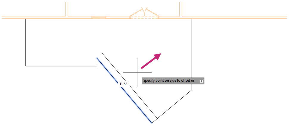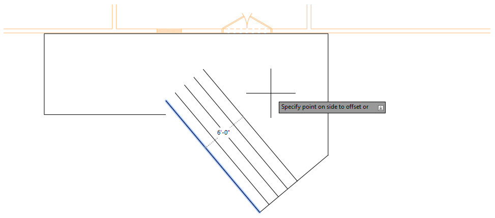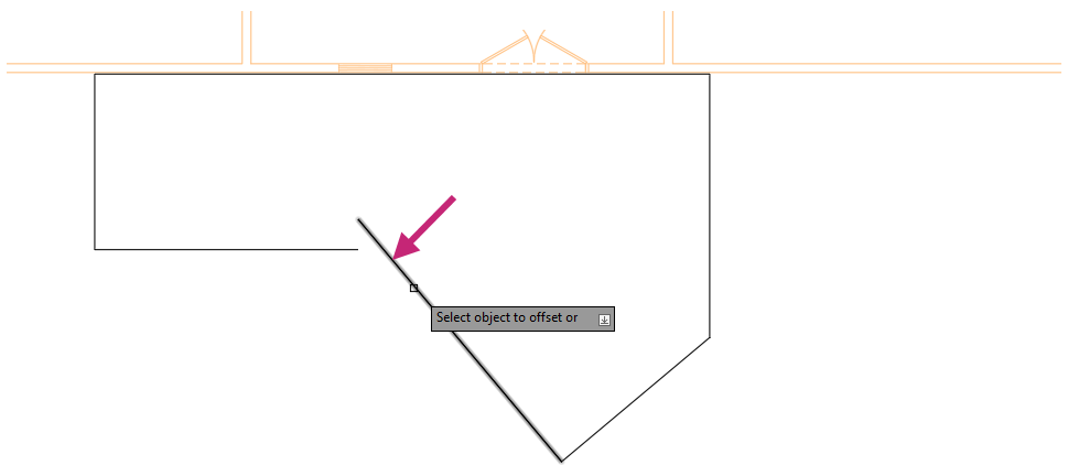 At the Select object to offset or [Exit/Undo] <Exit>: prompt, select the angled line indicated in the following image.