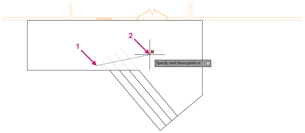 At the Specify next fence point or [Undo]: prompt, in the drawing area, click a point near (2) in the previous image.