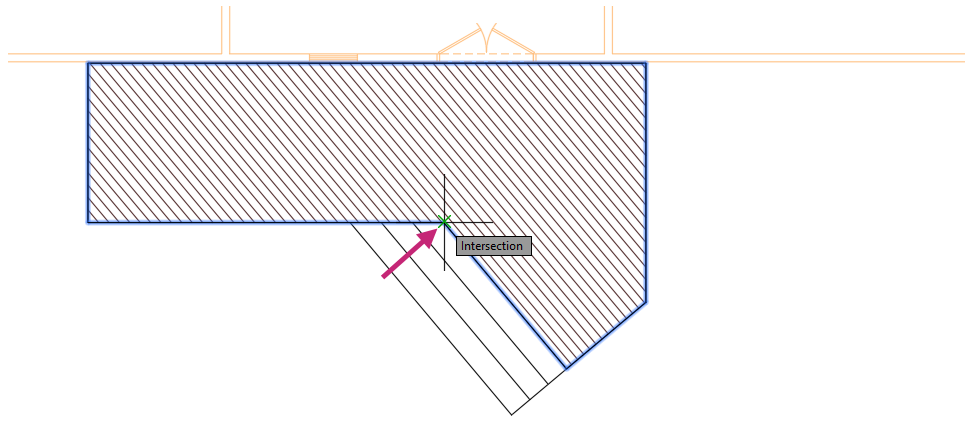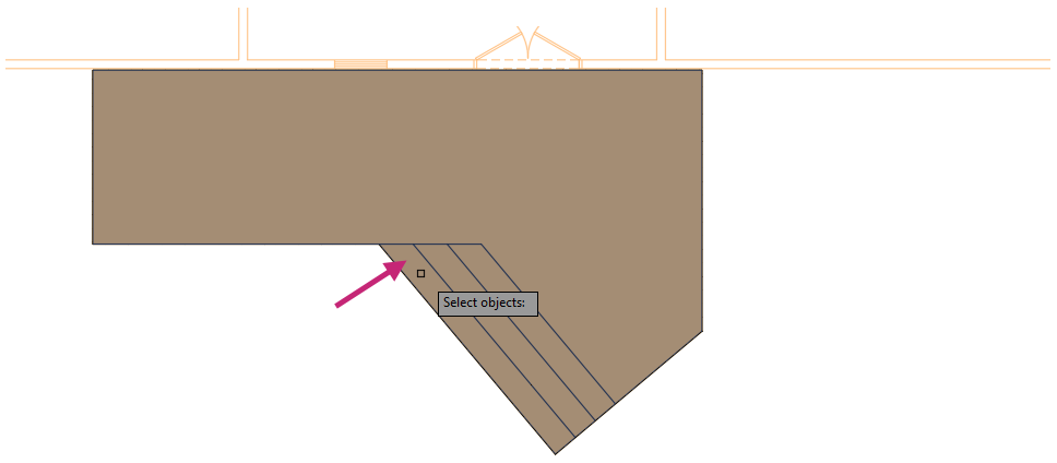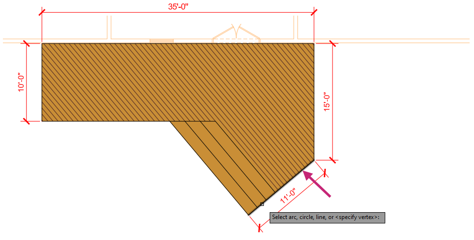 At the Select arc, circle, line, or <specify vertex>: prompt, select the outer-most angled line of the stairs.
