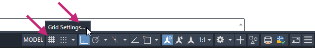 - On the status bar, right-click the Grid Drawing Display button and choose Grid Settings.Find