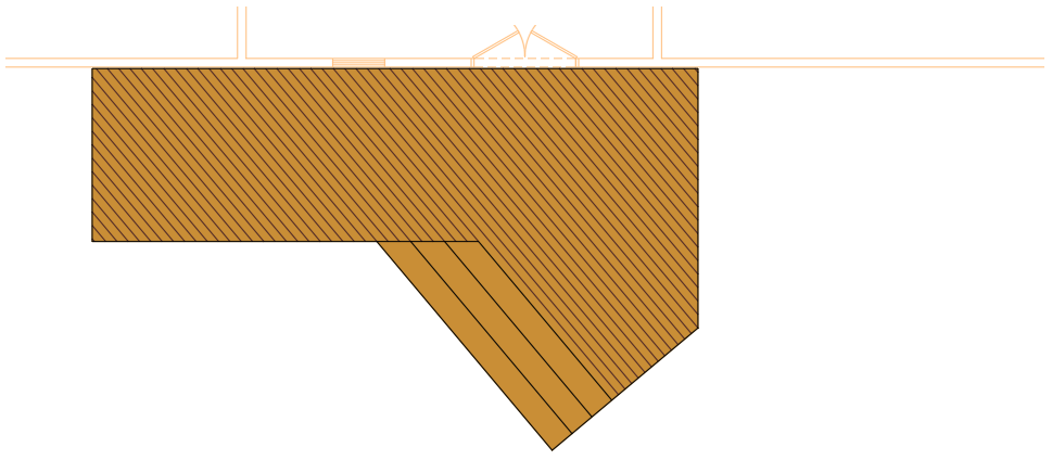 The hatch pattern is applied to the closed area and looks like planks for the decking.