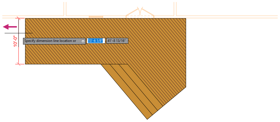 At the Select object to dimension: prompt, select the left-most vertical line of the deck.