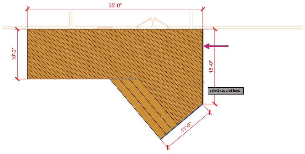 At the Select second line: prompt, select the right-most vertical line of the deck.