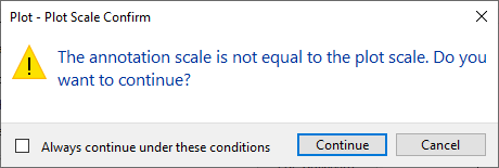 If the Plot - Plot Scale Confirm message box is displayed, click Continue.