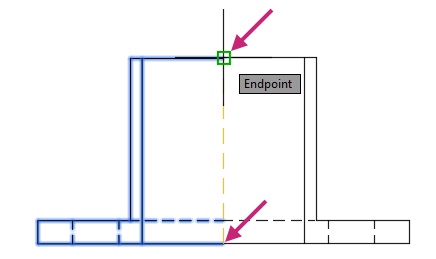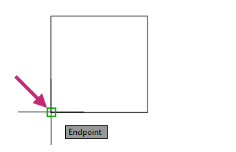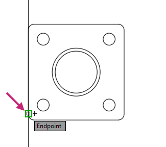 13. At the First point of mid: prompt, move the cursor to the endpoint of the lower-left corner of the rectangle and click when the Endpoint object snap marker and tooltip appear.