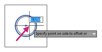 19. At the Specify point on side to offset or [Exit/Multiple/Undo] <Exit>: prompt, specify a point inside of the circle to offset the circle inward.