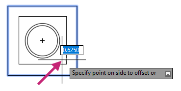 18. At the Select object to offset or [Exit/Undo] <Exit>: prompt, select the circle in the center of the rectangle.