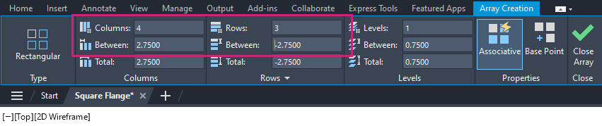 29. Click Home tab > Modify panel > Array drop-down menu > Rectangular Array.