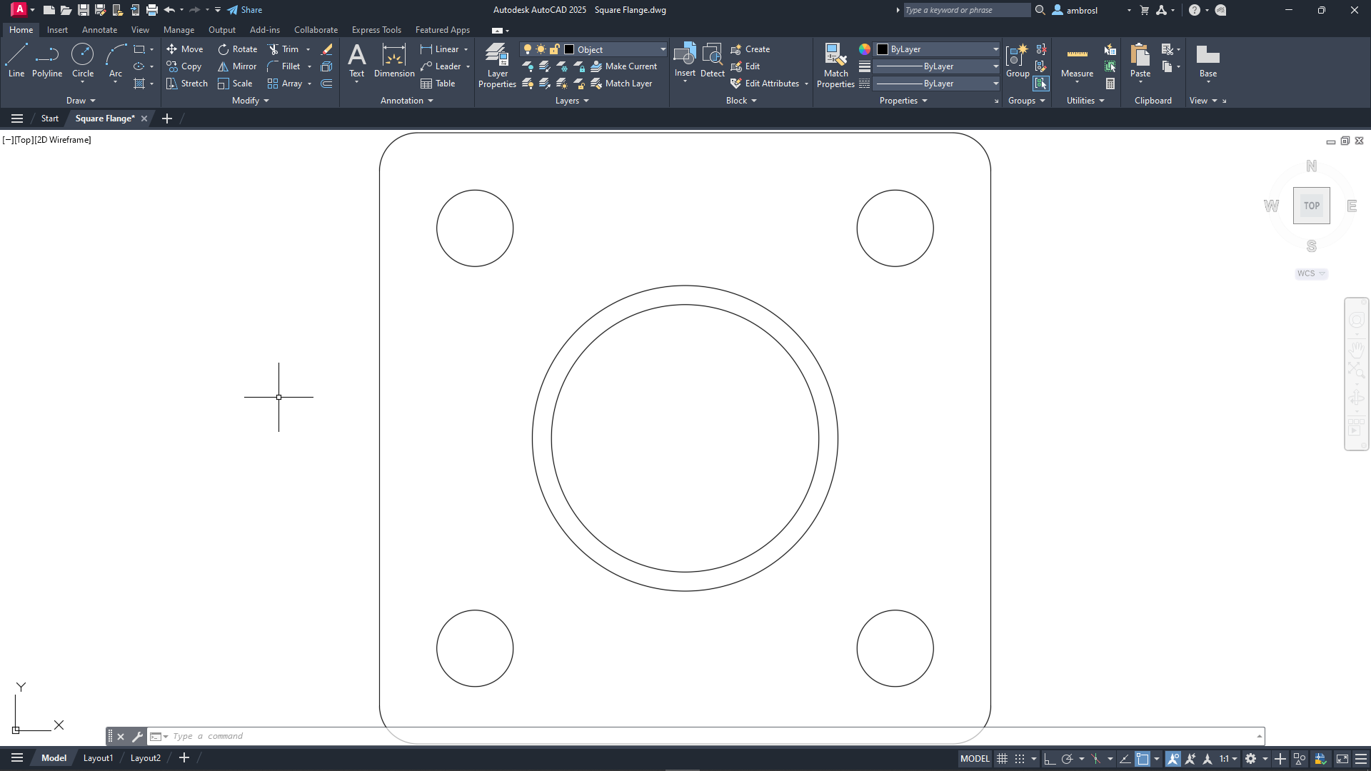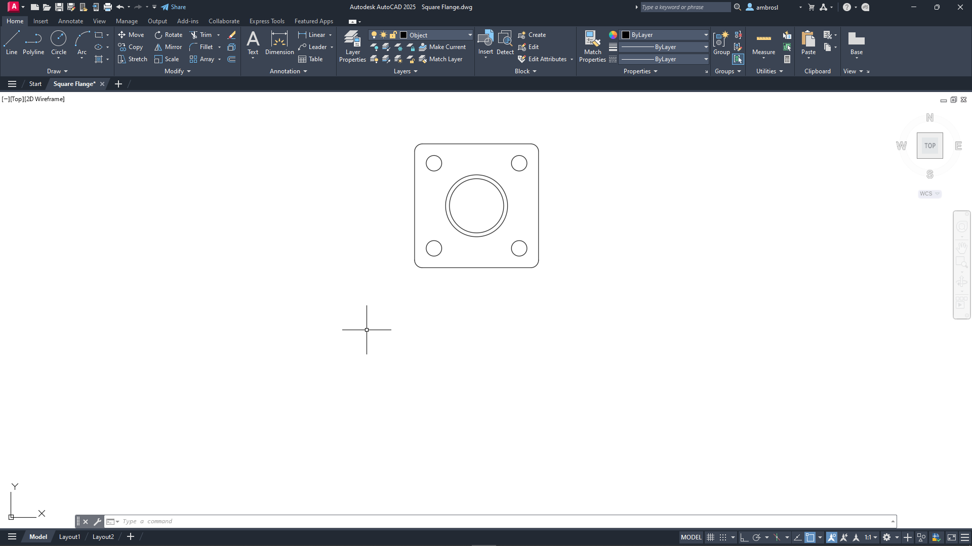 A new drawing file is created and named Square Flange in the Documents folder. Make sure you continue with this file for the remainder of the exercises.