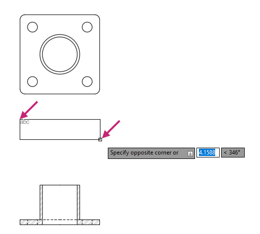 6. At the Specify opposite corner or [Height/Justify/Line spacing/Rotation/Style/Width/Columns]: prompt, specify a point below and to the right of the top view objects.