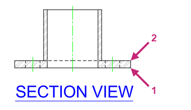 14. Place the dimension based on the endpoints indicated by (1) and (2) in the following image, and then place the dimension to the right of the previous dimension.