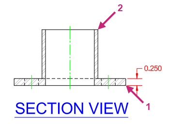16. Place a linear dimension based on the endpoints indicated by (1) and (2) in the following image and then place the dimension to the right of the vertical line.