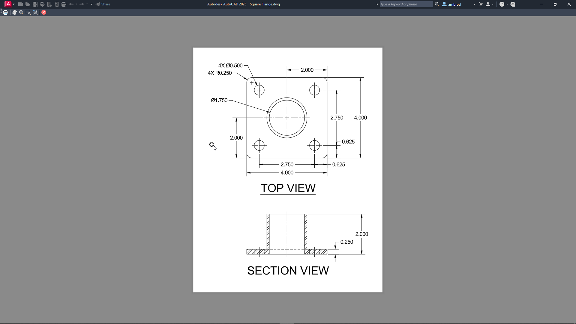 Plot/print the square flange views to a PDF file so that others without AutoCAD access can see the design.