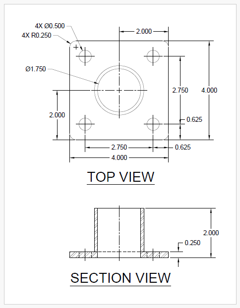 2B. Mechanical Design: Square Flange Plate (AutoCAD Foundations)