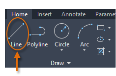 Or enter LINE at the Command prompt. When prompted for the first point, you can type in a coordinate or click where you'd like to begin. Once you specify your first point, the Command prompt will ask you where you'd like to end the line. Here, you can type in coordinates or click.