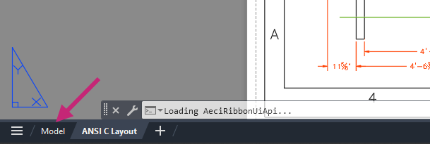 If the Model tab is not current, on the layout tabs below the drawing window, click the Model tab.