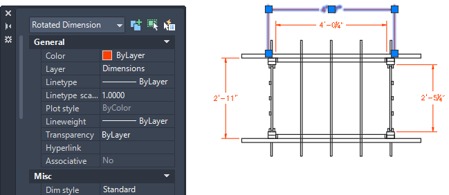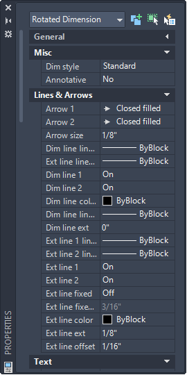 Examine the other properties of the dimension object displayed on the Properties palette.